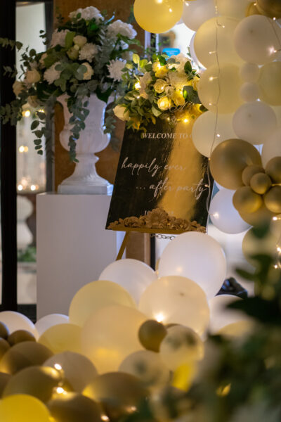 The candlelight created a warm and romantic ambiance, while the balloons added an airy and playful touch to the décor.