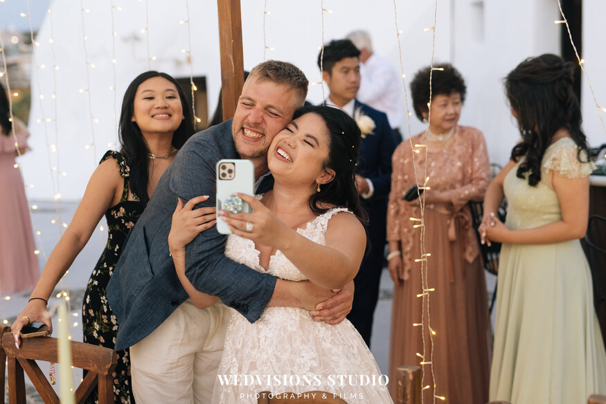 Throughout the evening, a skilled photographer captures every precious moment, ensuring that the magic of your Santorini wedding is forever preserved. From the intimate exchanges of glances to the joyous dance floor celebrations, each frame tells a story of love, happiness, and the beauty of the surroundings.